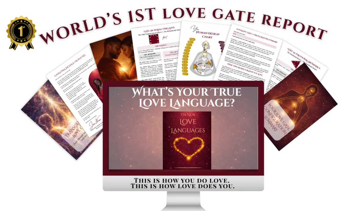The Love Gates Report is your personalized Human Design love blueprint. Using your birth details and chart, it reveals your 10 Love Gates—your true New Love Languages—and shows how you’re energetically wired to give and receive love.